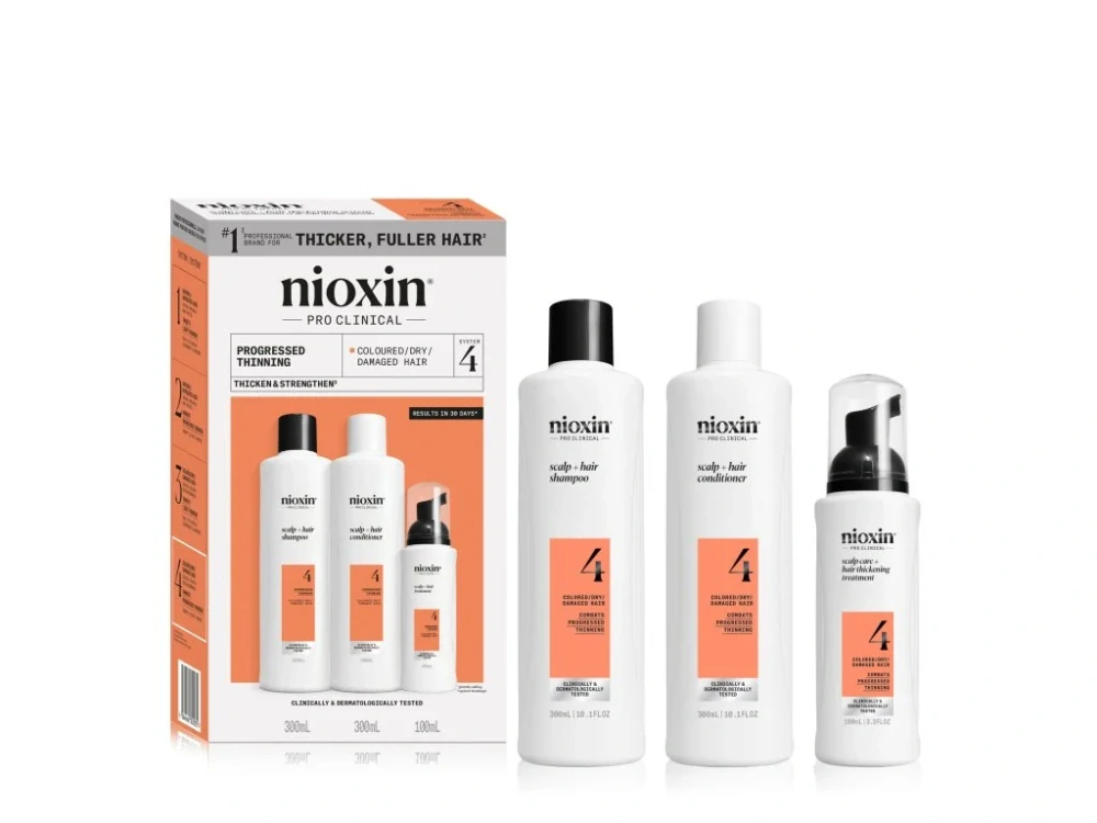 Komplexní rutinní péče zacílená na pokročilé řídnutí suchých, barvených, chemicky ošetřených jemných vlasů. Sada obsahuje šampon, kondicionér a bezoplachové sérum na vlasovou pokožku. Pro docílení maximálních výsledků je potřeba používat všechny 3 kroky pravidelně a dlouhodobě. Pokud jste v minulosti používali systémovou sadu 6 od Nioxin, tak System 4 ho nahrazuje.